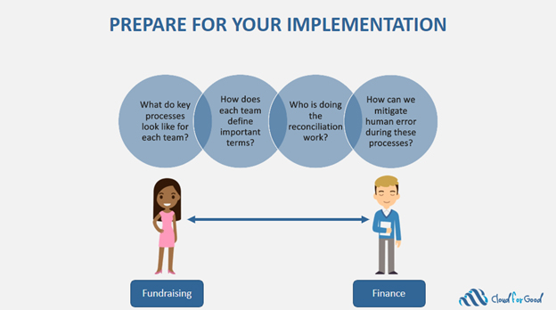 SW: Well, accounting and fundraising should already have been separated. Even if there was an existing integration, often people just trust the integration and don’t really know the business rules that are built into the integration. By moving to new systems, the integration has to be recreated and this requires the organization understanding and being able to articulate the business rules. Also, definitions can get clunky – the value of gifts received this month to the fundraising team could be different than the value of gifts received this month to the finance team. One team is probably including pledges and the other might not; the same applies for pledge payments. So, during the “technology” project, common terms will need clear definitions that work for both sides of the house.